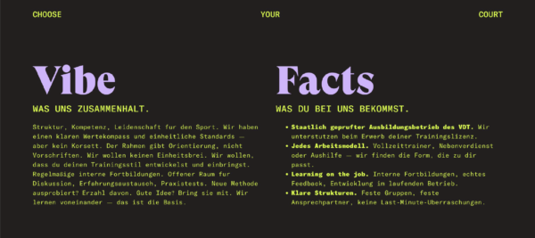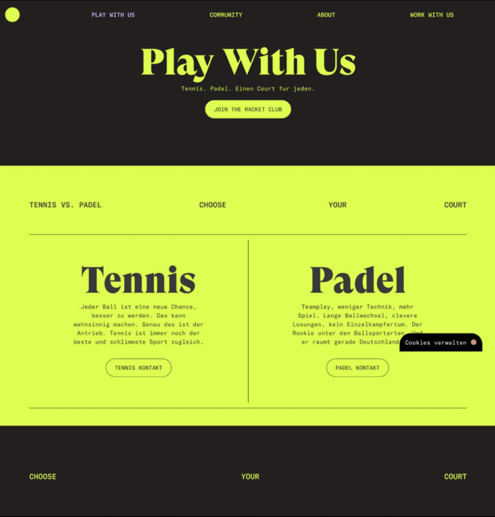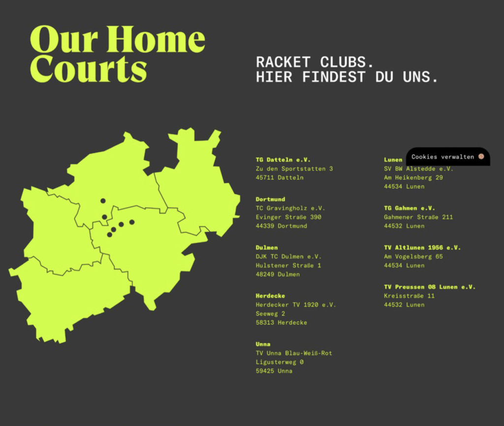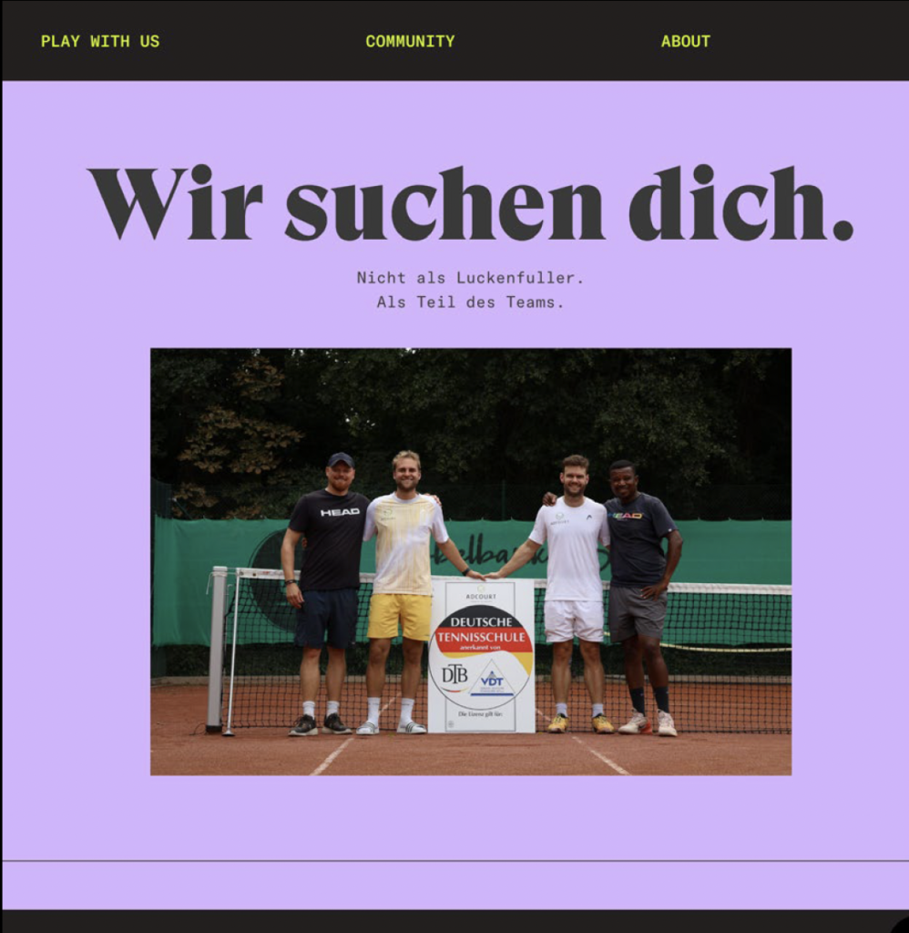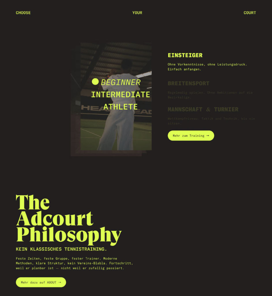 Adcourt ist eine moderne Tennisacademy aus Dortmund, die strukturiertes Trainingsmanagement mit einem ganzheitlichen Trainingsansatz verbindet. Ziel ist es, Spielerinnen und Spielern unabhängig vom Leistungsniveau einen unkomplizierten Zugang zum Tennissport zu ermöglichen und sie individuell in ihrer sportlichen Entwicklung zu begleiten.